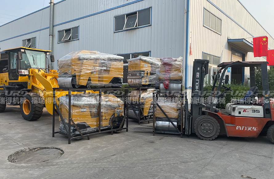 福瑞得機械一批壓路機打包裝柜出口印度