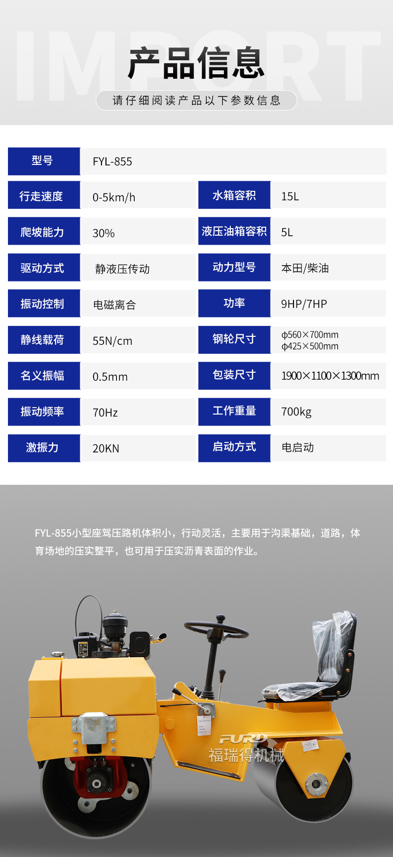 主要用于溝渠基礎(chǔ),道路,體育場地的壓實(shí)整平,也可用于壓實(shí)瀝青表面的作業(yè)。