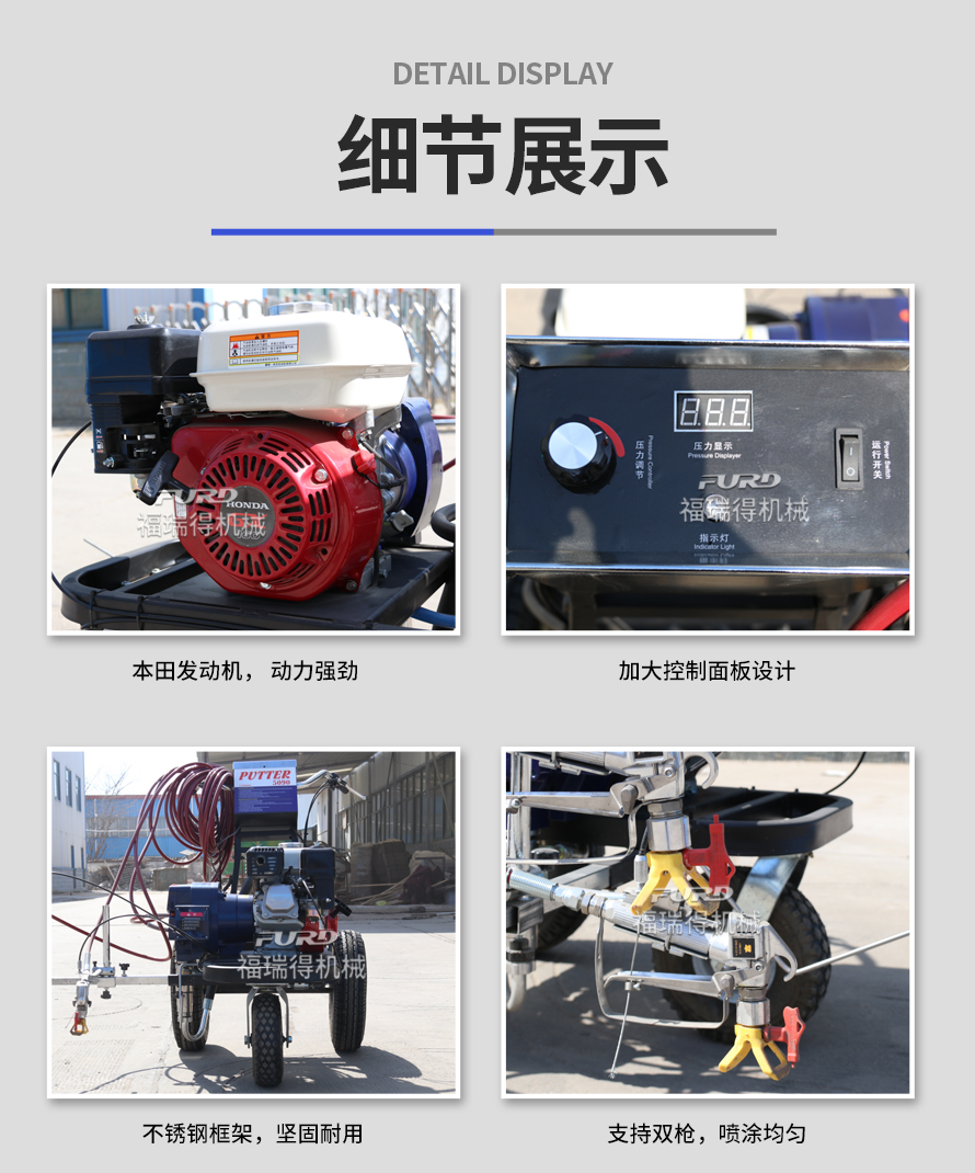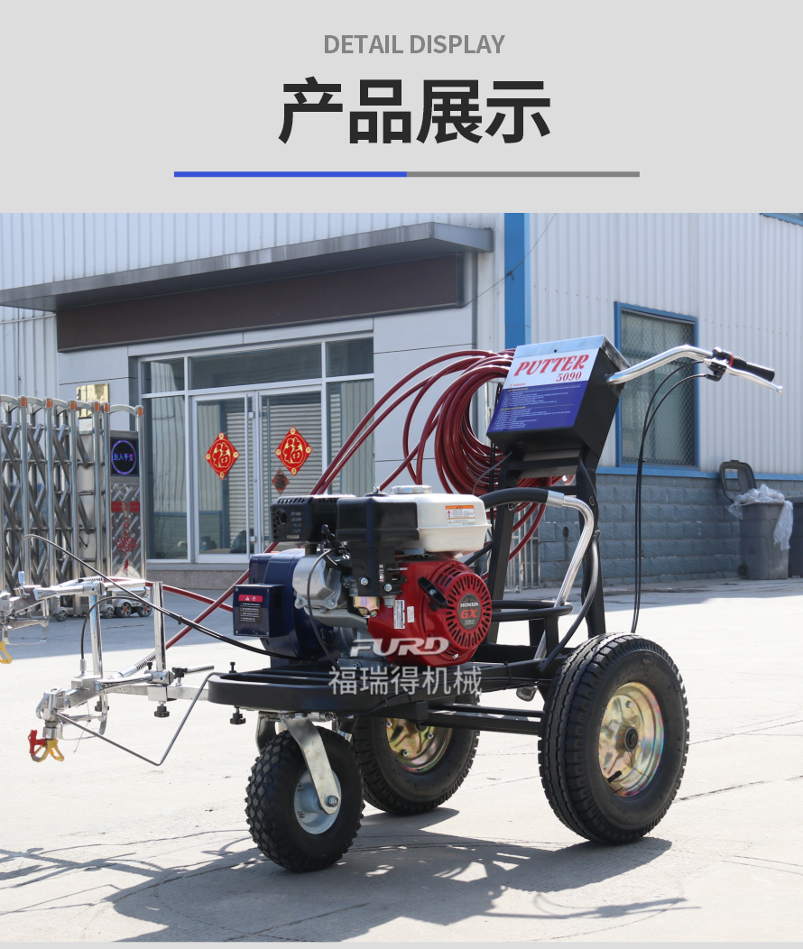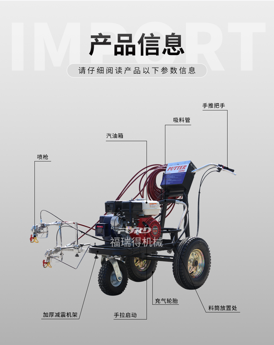小型手推式道路劃線(xiàn)機(jī)是一種在道路、停車(chē)場(chǎng)、廣場(chǎng)和跑道等平整地面上劃出不同約束、指引和警示等規(guī)則限制標(biāo)志的路面施工機(jī)械。最常見(jiàn)的就是在馬路上劃斑馬線(xiàn),在路上劃車(chē)庫(kù)線(xiàn)、停車(chē)線(xiàn)等等應(yīng)用于小型工程、短途施工,活動(dòng)方便,靈活操作。