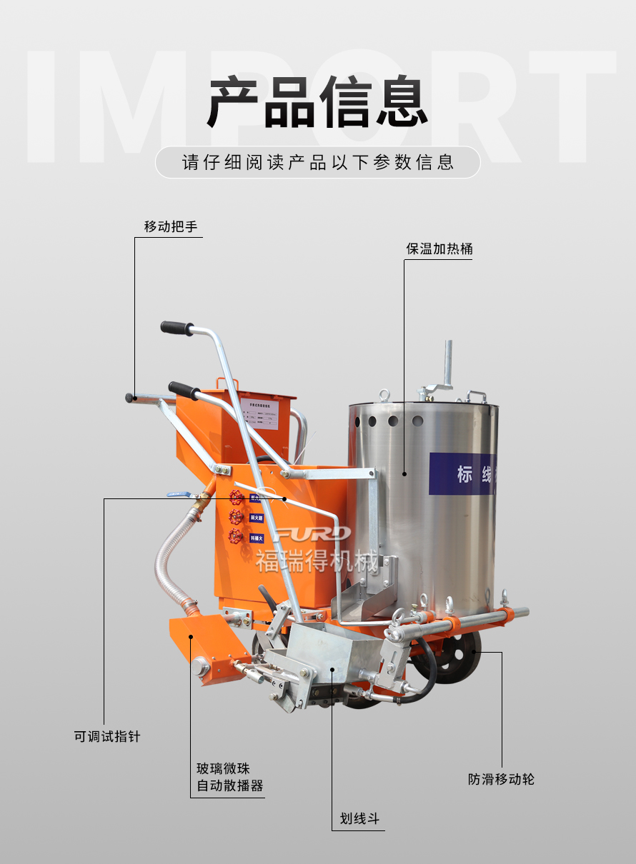 應(yīng)用于道路、高速公路、停車場(chǎng)、廣場(chǎng)和跑道的在平整地面上劃出不同約速、指引和警示等規(guī)則限制標(biāo)志的路面施工機(jī)械。