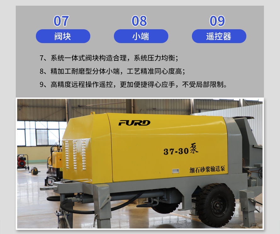 產(chǎn)品介紹: 1,大流量 采用加粗料缸,讓機械每一次循環(huán)出料多20% 2,效率高 移動便捷全部采用快接式管道卡,提高工作效率 3,便捷 本機可遠程遙控,操作不受地點限制,更加人性化 產(chǎn)品用途: 坡道灌漿,水平地面,隧道澆筑,模