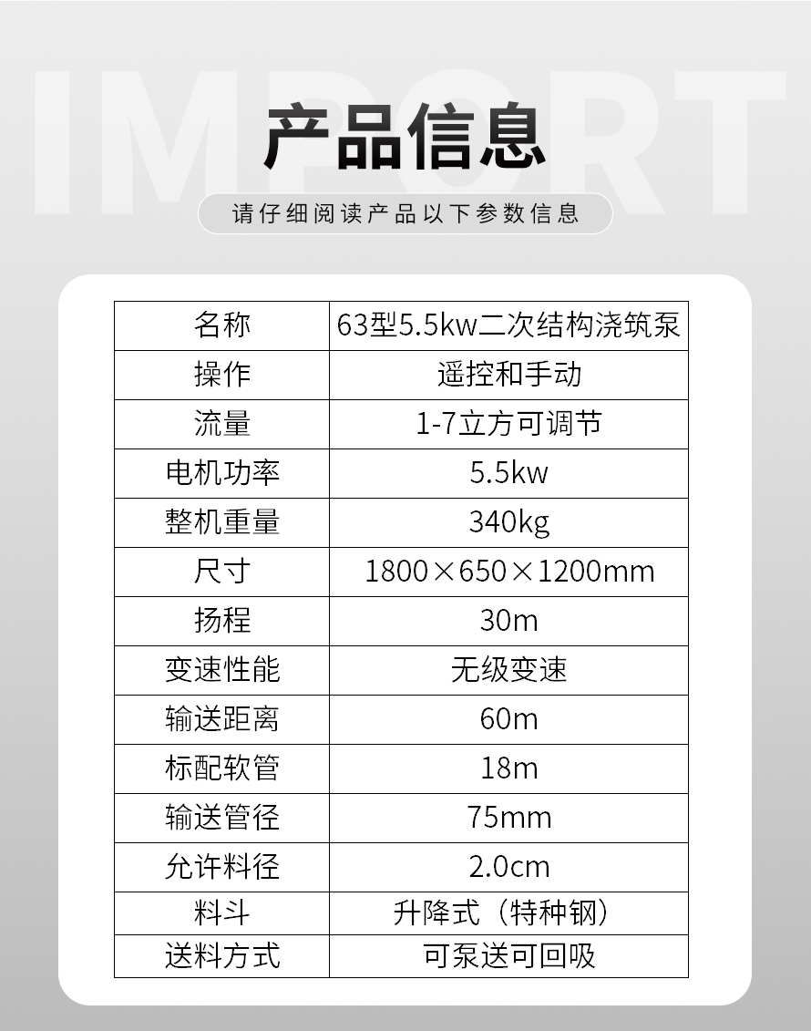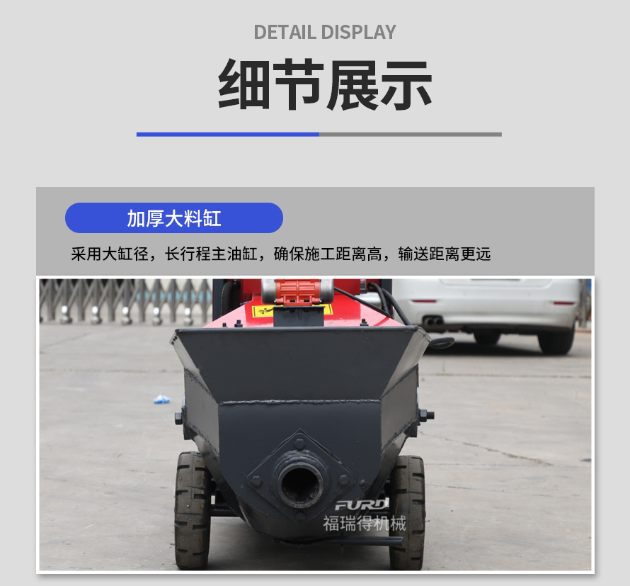 福瑞得二次結(jié)構(gòu)澆筑泵適用于商品房、農(nóng)村建房,打二次構(gòu)造柱,圈梁等,是您澆筑的好設(shè)備。電機功率小,體積小,重量輕,料斗可升降,真正能提高您的施工效率,是人工澆筑的幾十倍。